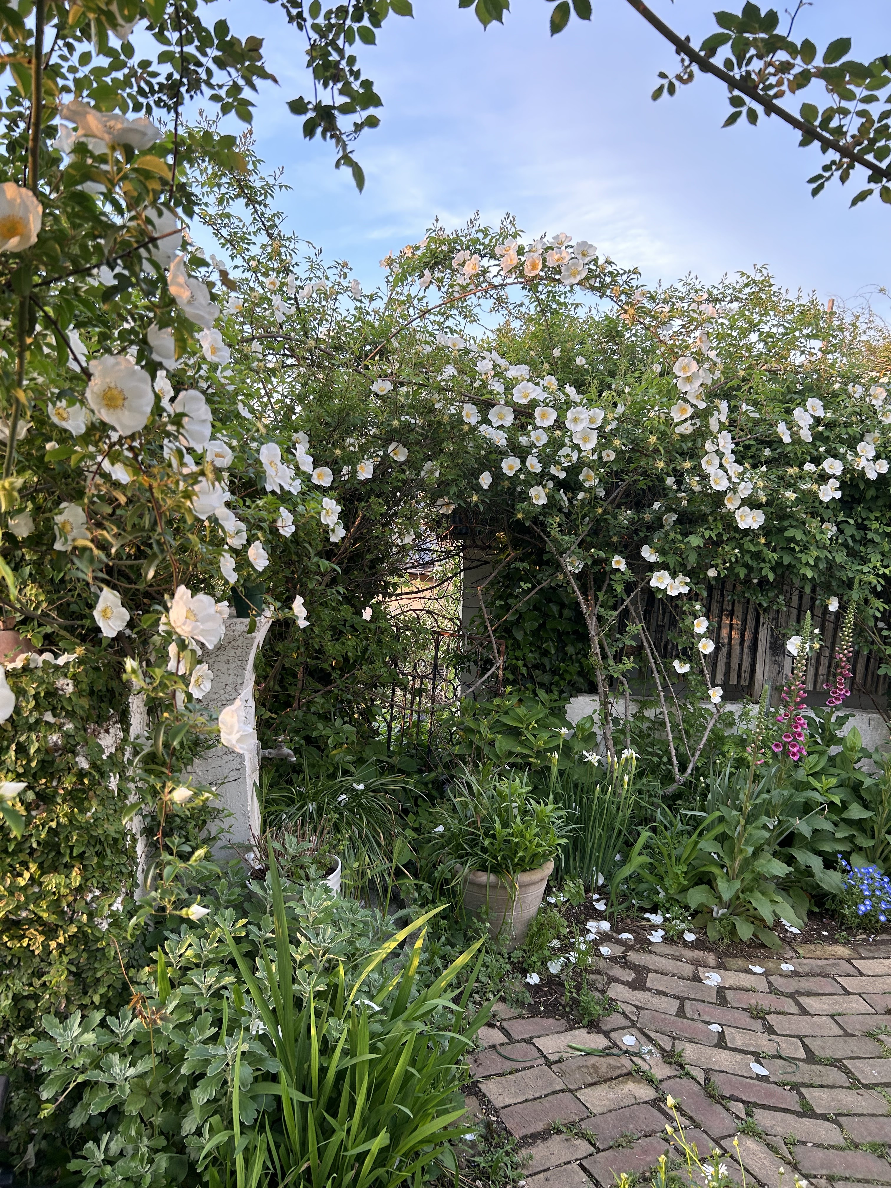 Every morning and every afternoon, we see a new face in the garden. Now it is covered with white flowers, but soon pinkish flowers will be all over. How pretty they are!
